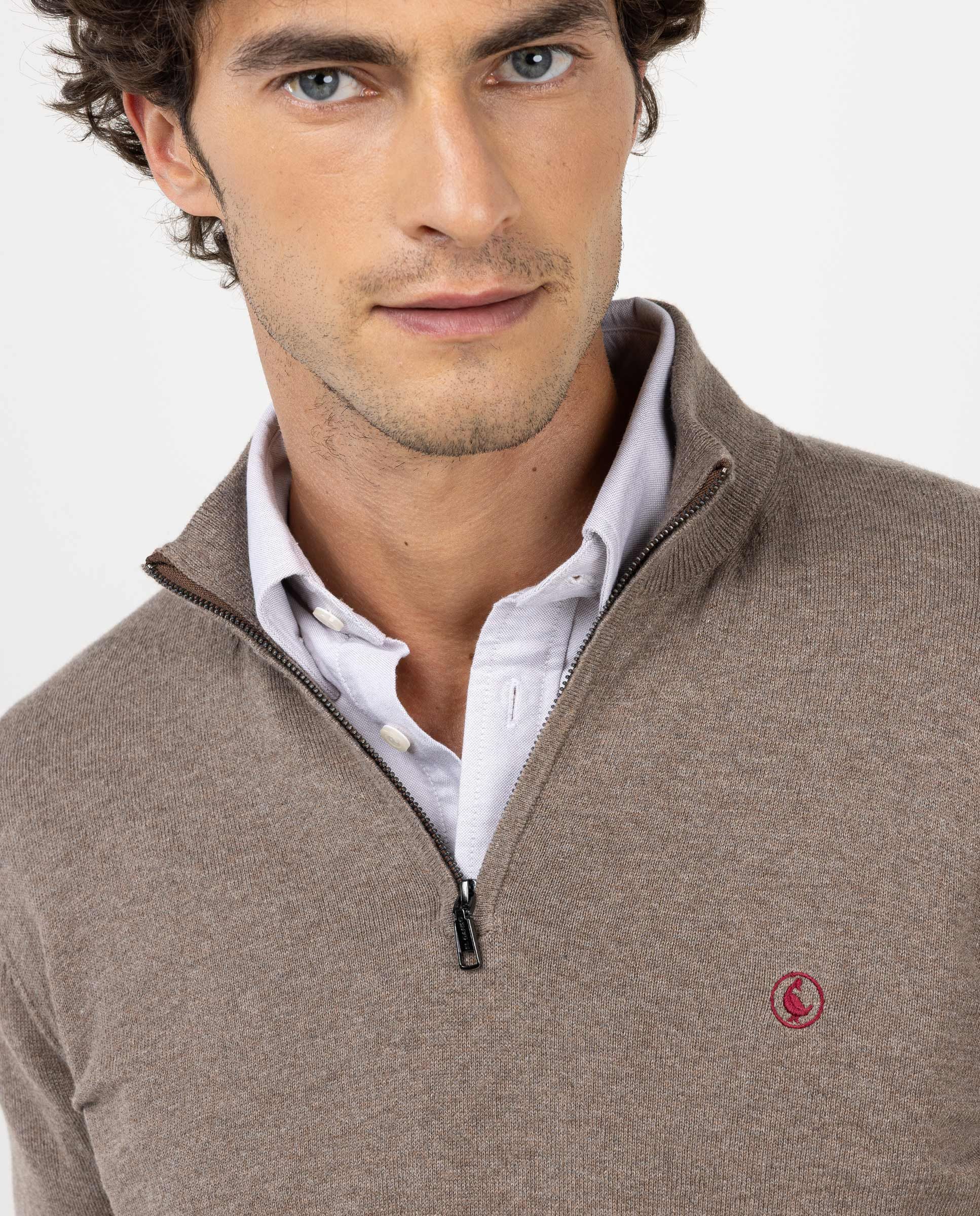 Jersey liso de hombre con cuello mock de la marca El Ganso fabricado en mezcla de algodón y cashmere para conseguir una calidad con mayor suavidad. Corte regular fit, cuello mock y cierre mediante cremallera. Manga larga acabada en rib y detalle en la cremallera. Logo bordado en el pecho.